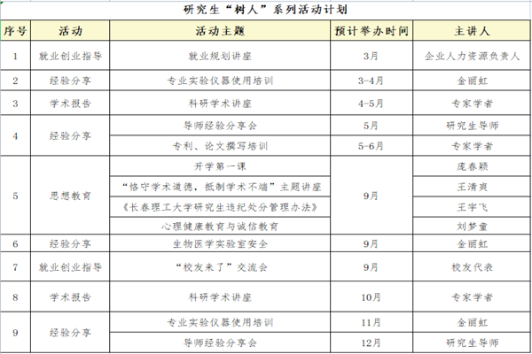 此次研究生“树人”系列活动共分为思想教育、学术报告、经验分享、就业创业指导4个板块,后续活动将陆续开展。活动旨在聚焦研究生培养质量,通过全方位、多渠道、立体化的培养方式,深化校企医工合作,促进研究生学术素养和科研水平的提高,提高学院研究生培养质量,推动生物医学工程、生物与医药学科发展。