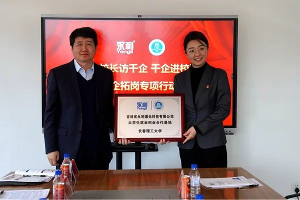 活动中,杨华民代表学校为吉林省光电子产业孵化器、吉林省永利激光科技有限公司、纬湃汽车电子(长春)有限公司授予“大学生就业创业合作基地”牌匾。随访的学院负责人与企业HR深入对接,累计为毕业生投递简历百余份。