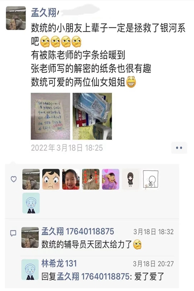 每天的工作是忙碌而充实的,核酸检测、三餐配送、搬运物资、打扫消毒、心理疏导……三个人忙得不可开交,然而她们悉心照顾的第四公寓的学生却并不属于数学与统计学院。