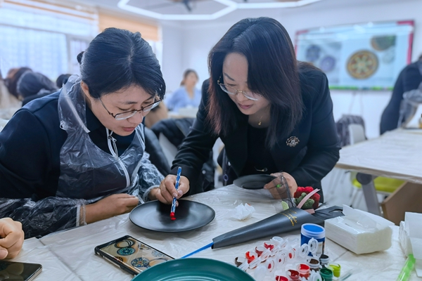 活动中,吉林省花卉协会副会长于莉萍为大家讲授插花的技巧、配色与摆放。长春市妇女草编协会副会长杨翠艳从运笔、画法、配色等方面带大家领略了曼陀罗波点彩绘的魅力。